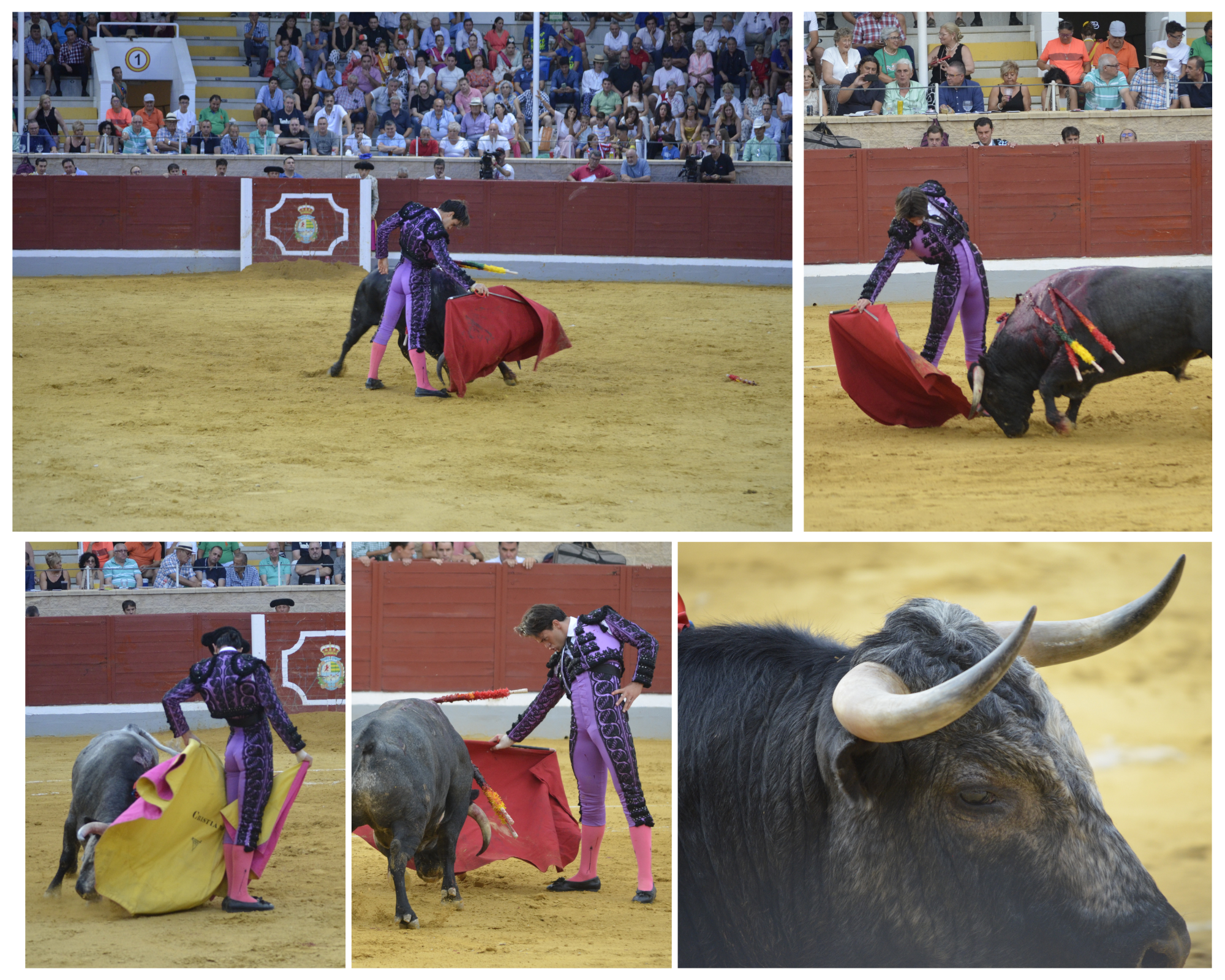 El cierraplaza de la ganadería de Rehuelga, “Bufón” que destacó en el tercio de varas entrando al peto dos veces y metiendo la cara aunque fueron traseros. Brindó la faena al público y comenzó desde los tercios doblándose con él. El binomio no terminó de acoplarse, y sin encontrarse el sitio la faena pasó desapercibida. Media estocada.