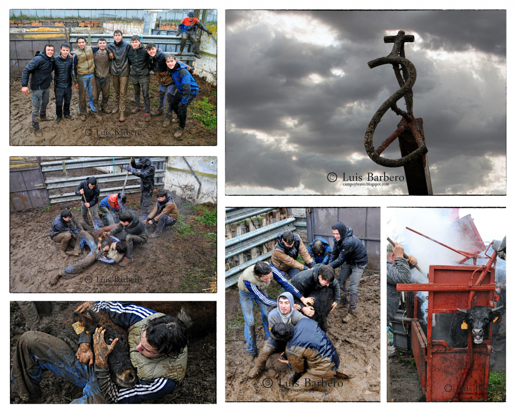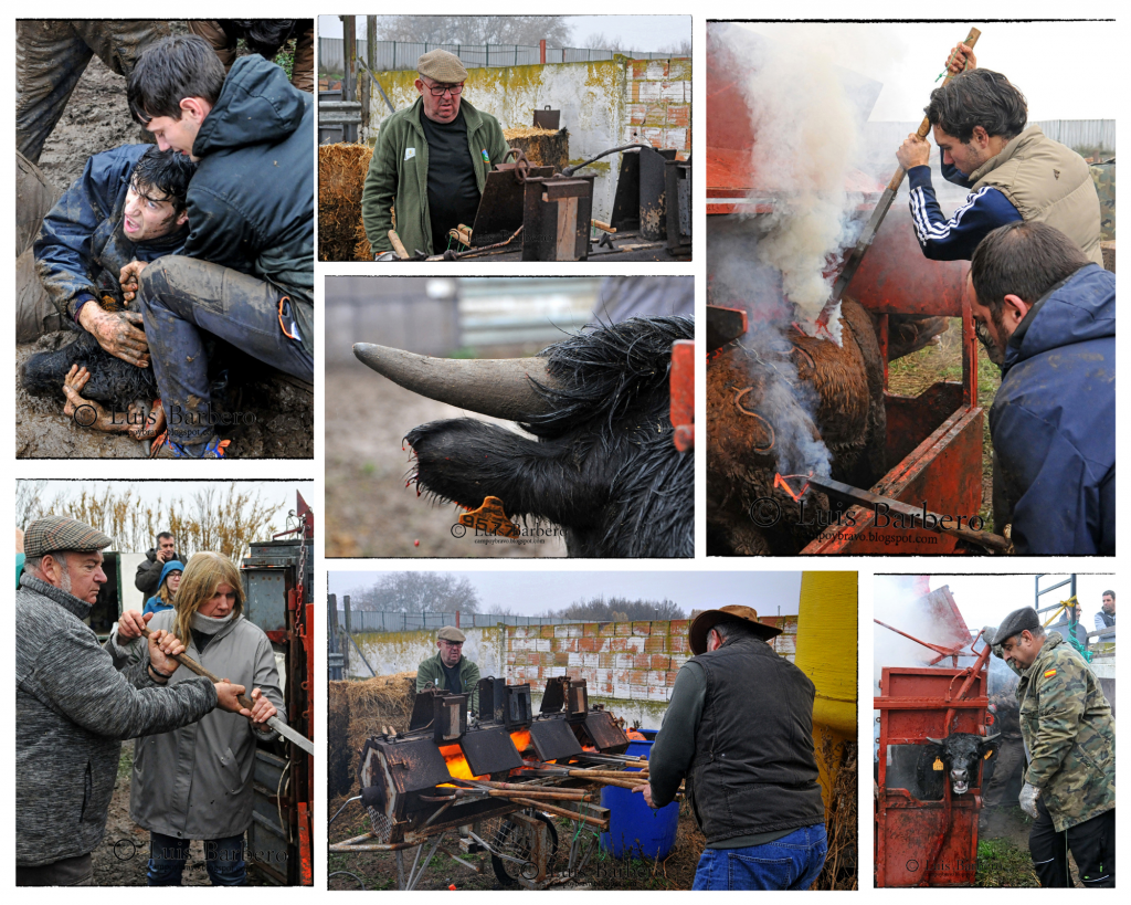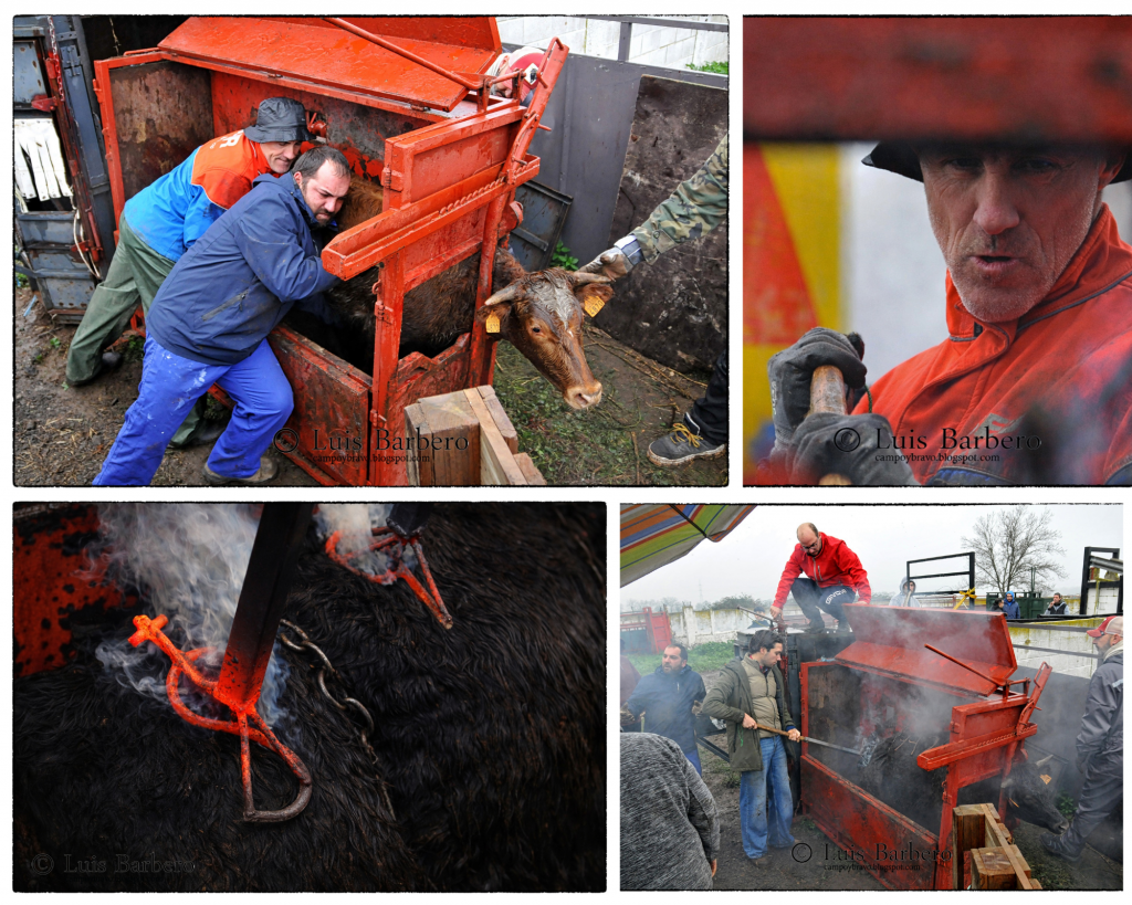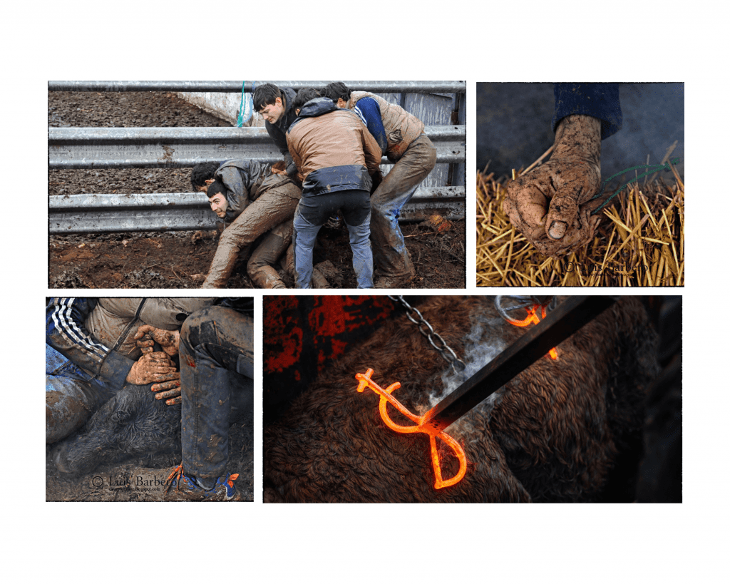 Uno tras otro, 55 animales, 23 machos y 32 hembras pasaron por el cajón bajo la supervisión del veterinario de la GLU. Más de tres horas de trabajo, entre frío, lluvia y barro con varios animales marcados a mano sobre un auténtico lodazal, ejecutadas con precisión y respeto. Reses nacidas entre julio de 2024 y junio de 2025, que desde ese momento pasan a formar parte del recorrido ganadero de Rafael Alarcón, marcadas con la característica oreja despuntada en ambas.