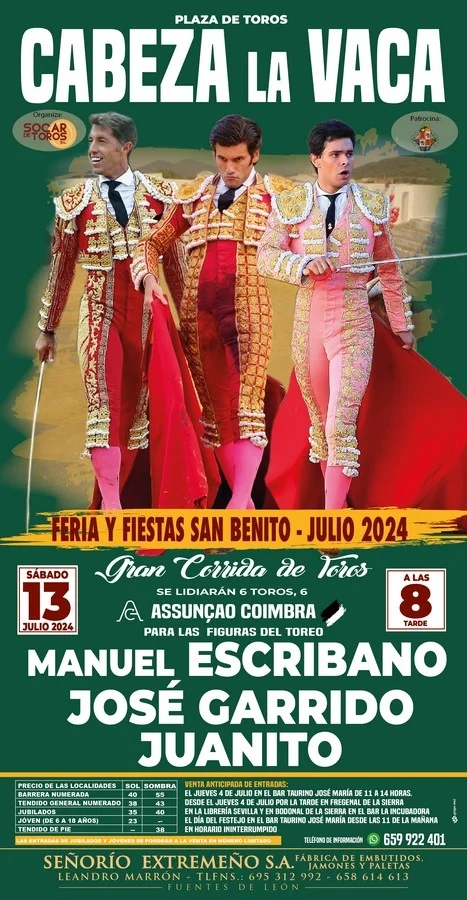 El cartel lo componen las figuras Manuel Escribano, José Garrido y Juanito, que lidiarán toros de la ganadería de Assunçao Coimbra, el día 13 de julio a las 8 de la tarde.