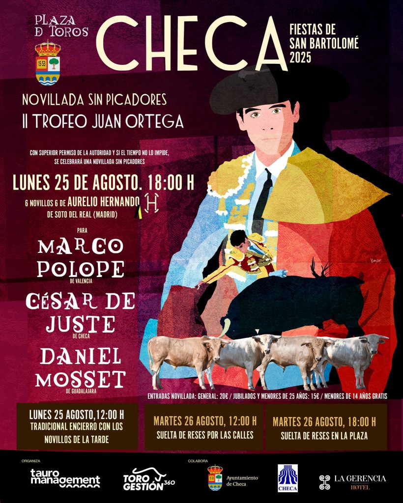 La localidad de Checa (Guadalajara), con una fuerte tradición taurina, ha presentado el cartel de sus festejos 2025, organizados por Torogestión360 y Tauromanagement. Tras el éxito cosechado el pasado año con la instauración del Trofeo Juan Ortega, este año se recupera la novillada de seis reses, devolviendo así el esplendor a uno de los eventos más esperados por los aficionados.