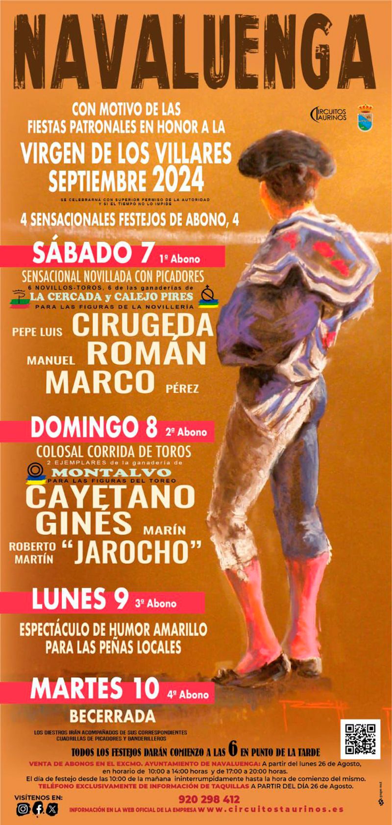 – VENTA DE ABONOS EN EL EXCMO. AYUNTAMIENTO DE NAVALUENGA: A partir del lunes 26 de Agosto, en horario de 10:00 a 14:00 horas y de 17:00 a 20:00 horas.