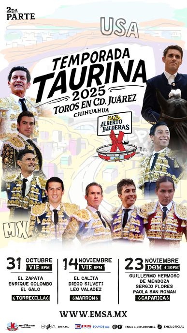 Tras el rotundo éxito de la primera parte de la Temporada Taurina 2025, la Plaza de Toros Alberto Balderas de Ciudad Juárez ha anunciado la continuación de su ciclo con tres corridas de gran atractivo, que reunirán a figuras de España, Venezuela y México.