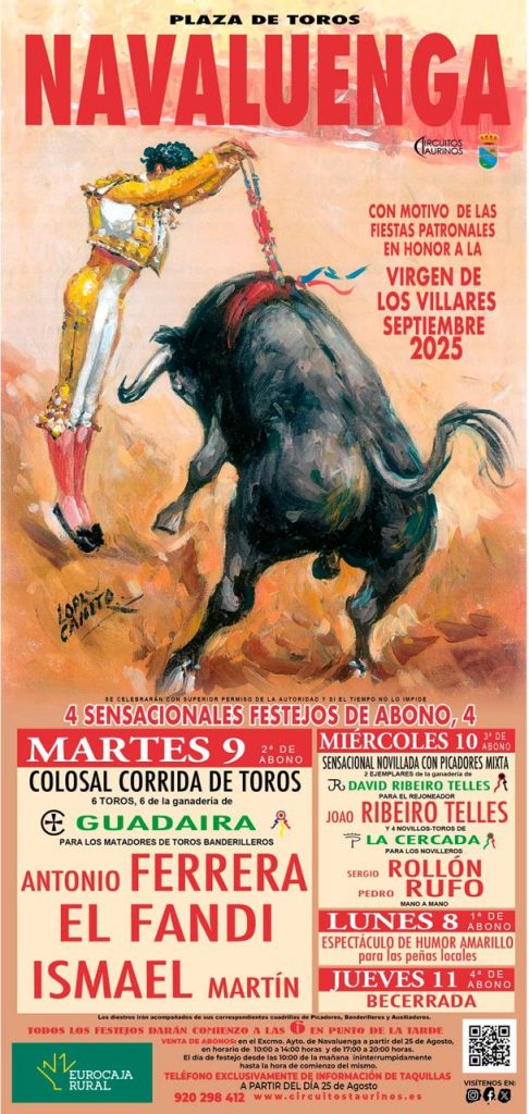 La localidad abulense de Navaluenga ya tiene definidos los carteles de su feria taurina 2025, organizada como cada año por la empresa Circuitos Taurinos con motivo de las fiestas en honor a la Virgen de los Villares. El ciclo, que se celebrará los días 9 y 10 de septiembre, constará de una corrida de toros, una novillada con picadores y dos festejos populares que completan una atractiva programación para todos los públicos.