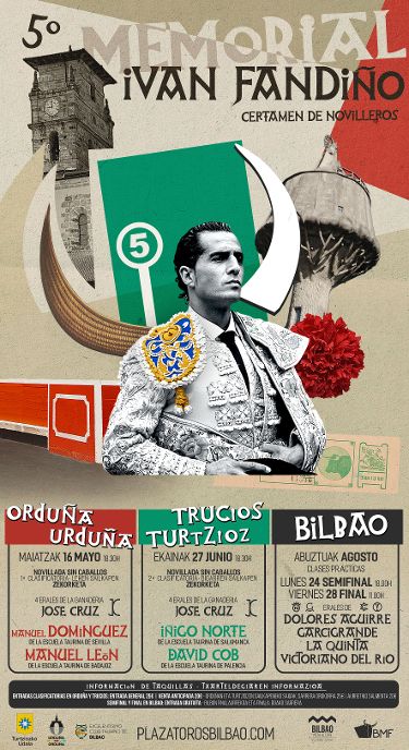El cartel de esta quinta edición rinde homenaje a Iván Fandiño, combinando su figura con el bordado azul de Bilbao, que estrenó en su histórica encerrona en Vista Alegre en 2012. La composición incorpora además elementos que evocan a Orduña y Trucíos, simbolizando la conexión del torero con su tierra y con la afición que siempre lo acompañó, y recordando el espíritu con el que defendió su tierra dentro y fuera de los ruedos.