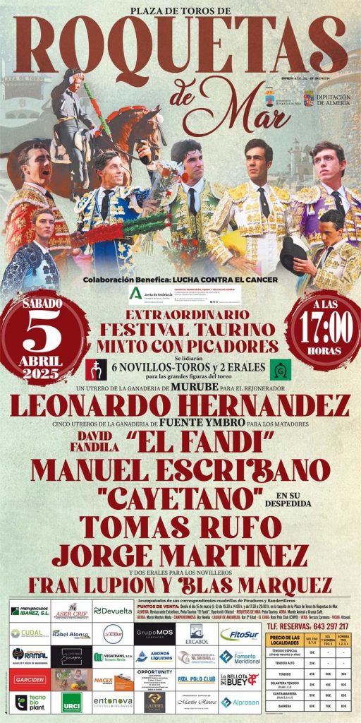 Ha sido presentado oficialmente el cartel del Festival Taurino Mixto con picadores que se va a celebrar el próximo sábado día 5 de abril en la localidad almeriense de Roquetas de Mar.