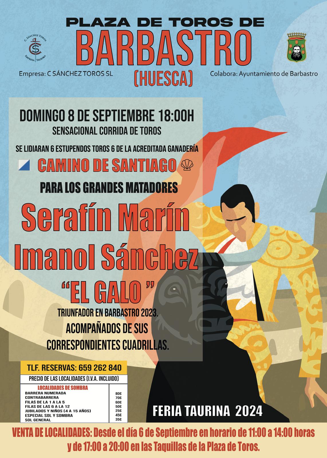 En esta ocasión, se lidiarán seis toros seis de la prestigiosa ganadería Camino de Santiago, conocidos por su bravura y nobleza en el ruedo. Los encargados de enfrentarse a estos imponentes ejemplares serán tres reconocidos matadores: Serafín Marín, Imanol Sánchez, y El Galo, quienes demostrarán su arte y valor en una tarde que promete emociones intensas.