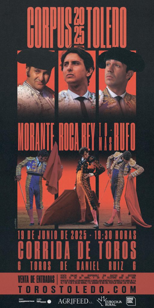 La tradicional Corrida del Corpus de Toledo, una de las citas de referencia del calendario taurino, ya tiene cartel. La empresa Eventos Mare Nostrum, gestora del coso, ha apostado un año más por la máxima categoría y remate ya que el próximo jueves 19 de junio, en la ciudad imperial trenzarán el paseíllo Morante de la Puebla, Andrés Roca Rey y Tomás Rufo, que lidiarán una corrida de Daniel Ruiz.