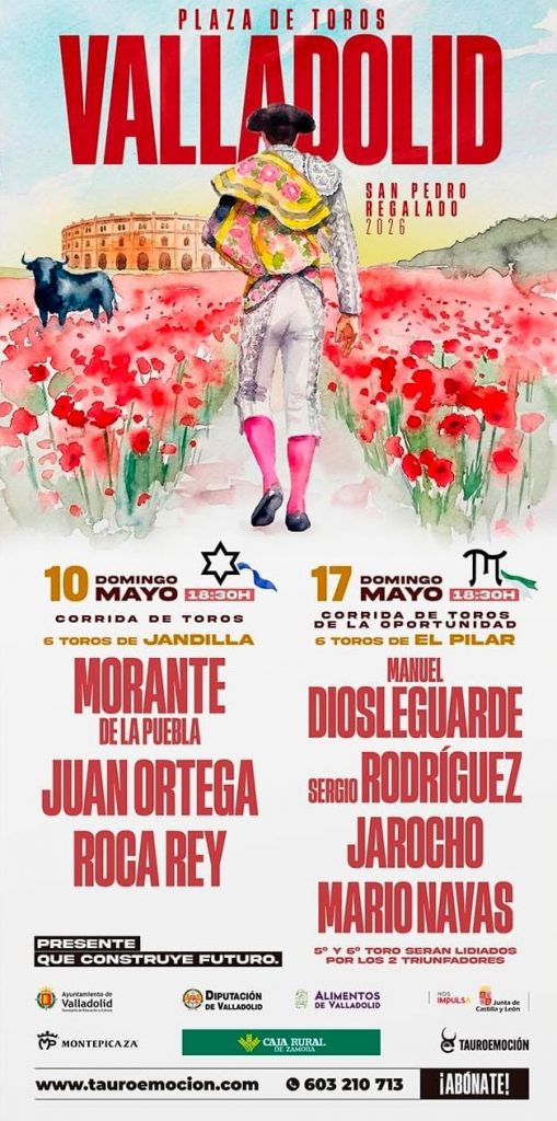 El domingo 10 de mayo tendrá lugar la gran corrida con toros de Jandilla, en la que harán el paseíllo Morante de la Puebla, en su reaparición esta temporada, Roca Rey y Juan Ortega, configurando un cartel de máximo atractivo que sitúa a Valladolid como uno de los epicentros taurinos del mes de mayo.