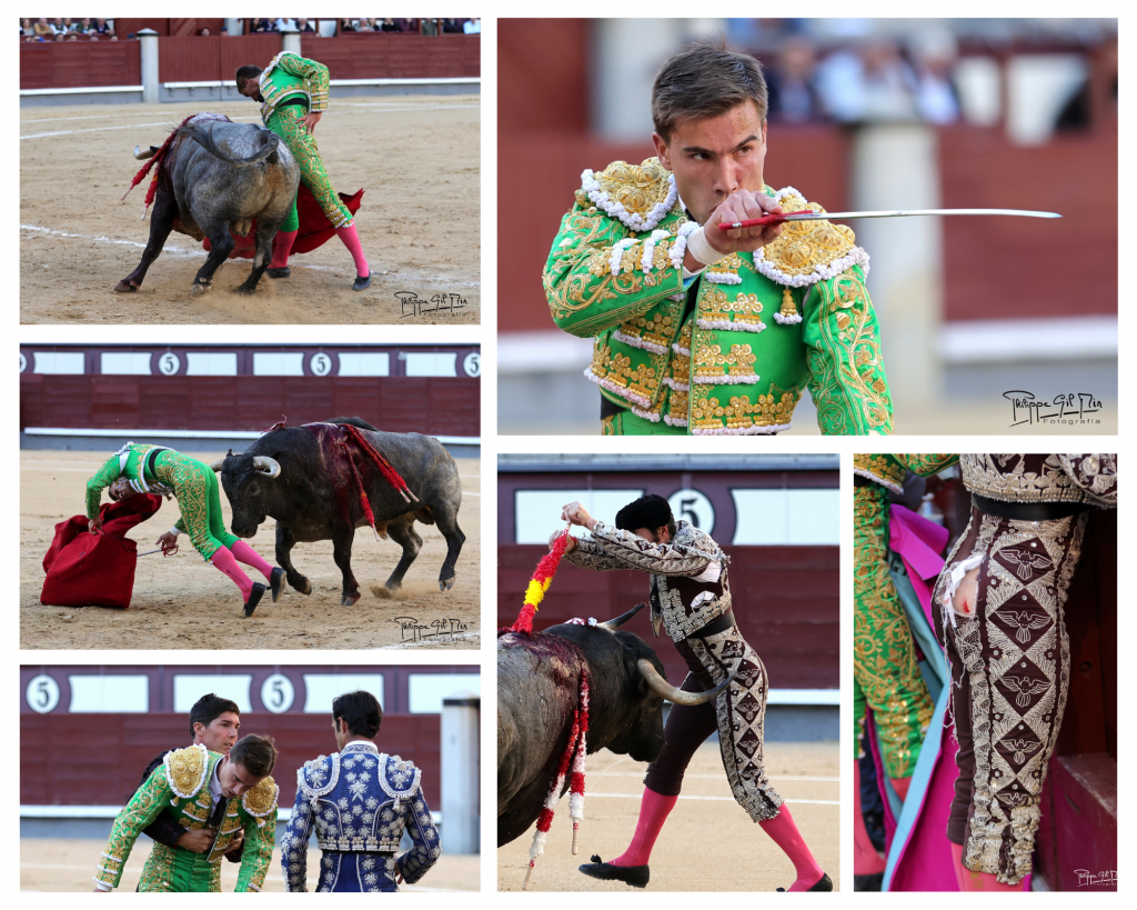 En quinto lugar saltó al ruedo ‘Presidiario I’ para Gerpe. Lo saludó con verónicas templadas, intentando fijarlo camino de los medios. Tras banderillas el toro comenzó a desarrollar sentido y complicaciones, midiendo y buscando. Gerpe, muy firme, se dobló con él en el inicio y le planteó faena sobre el derecho, donde el toro repetía algo más. Hubo dos tandas ligadas, una voltereta fuerte y varios sustos que no quebraron su actitud. Dio una vuelta al ruedo de auténtico peso.