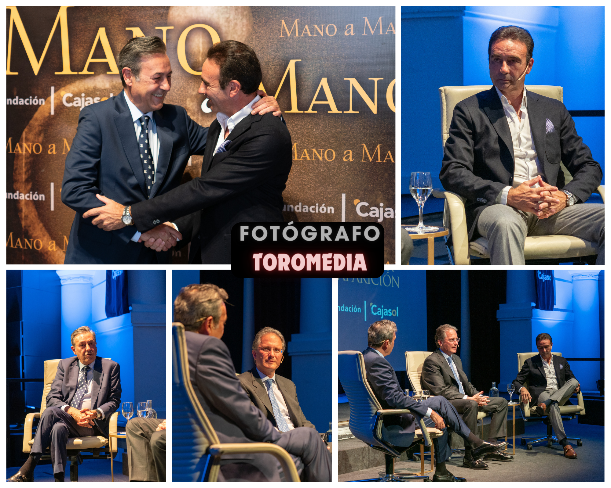 El maestro valenciano Enrique Ponce y el periodista madrileño José Ribagorda, que es hijo de torero y un desacomplejado aficionado practicante, han protagonizado en la tarde de ayer una nueva edición de los Mano a Mano de la Fundación Cajasol, en concreto la número 72 de estos encuentros culturales que se celebran en Sevilla desde 2007, que volvió a llenar por completo el Teatro Cajasol.