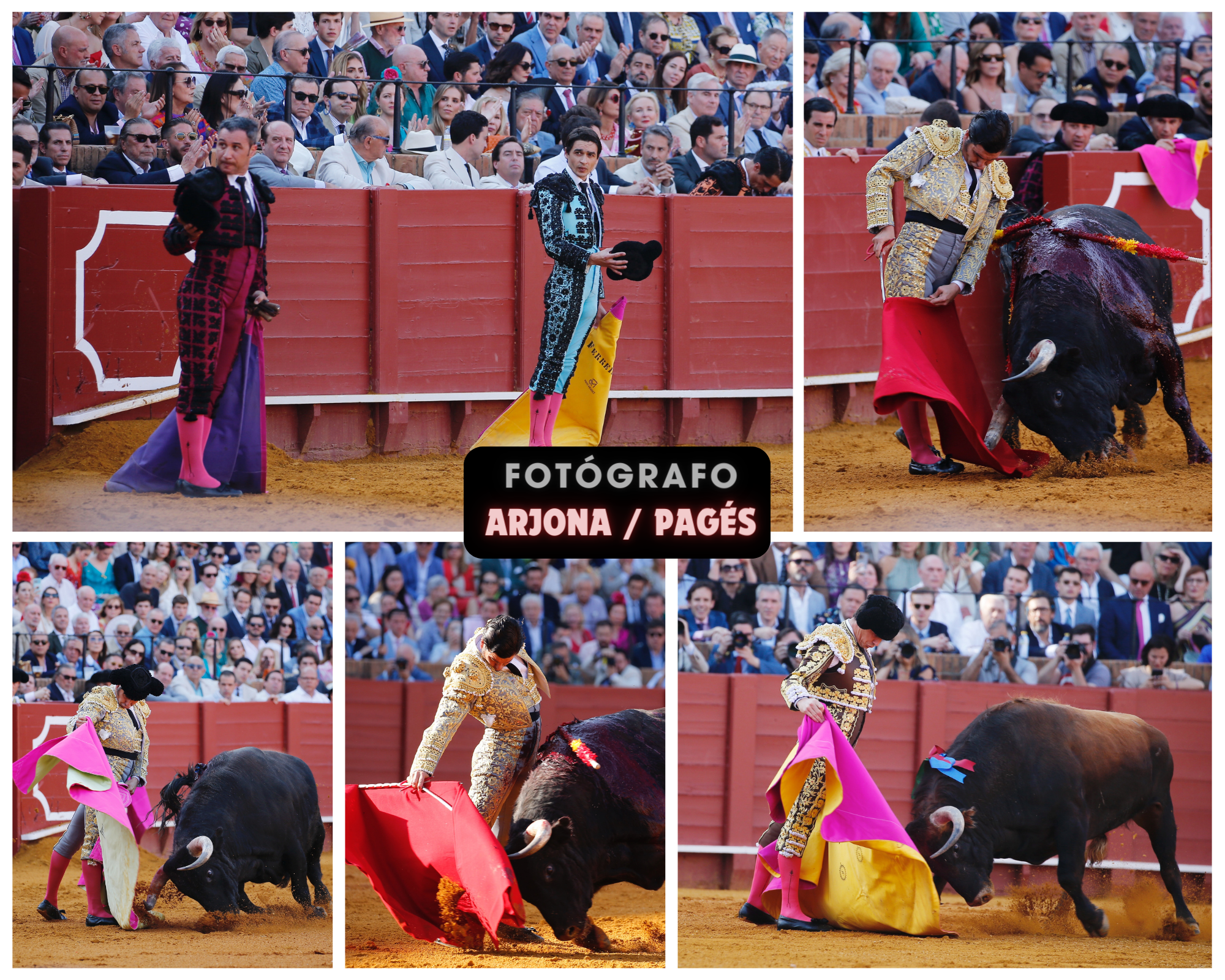 La faena de Juan Ortega al sexto, el mejor toro de la corrida de Domingo Hernández, marcó la cumbre artística de la tarde y concluyó con las dos orejas en manos de este torero sevillano. El público de la Maestranza se entregó al despliegue de torería y al ritmo lento que supo imprimir a una faena completa y preciosista de principio a fin, una obra que fue paladeada por Sevilla. También Daniel Luque rayó a gran altura en el quinto, al que literalmente arrancó una oreja. Morante de la Puebla no tuvo lote y se fue de vacío.