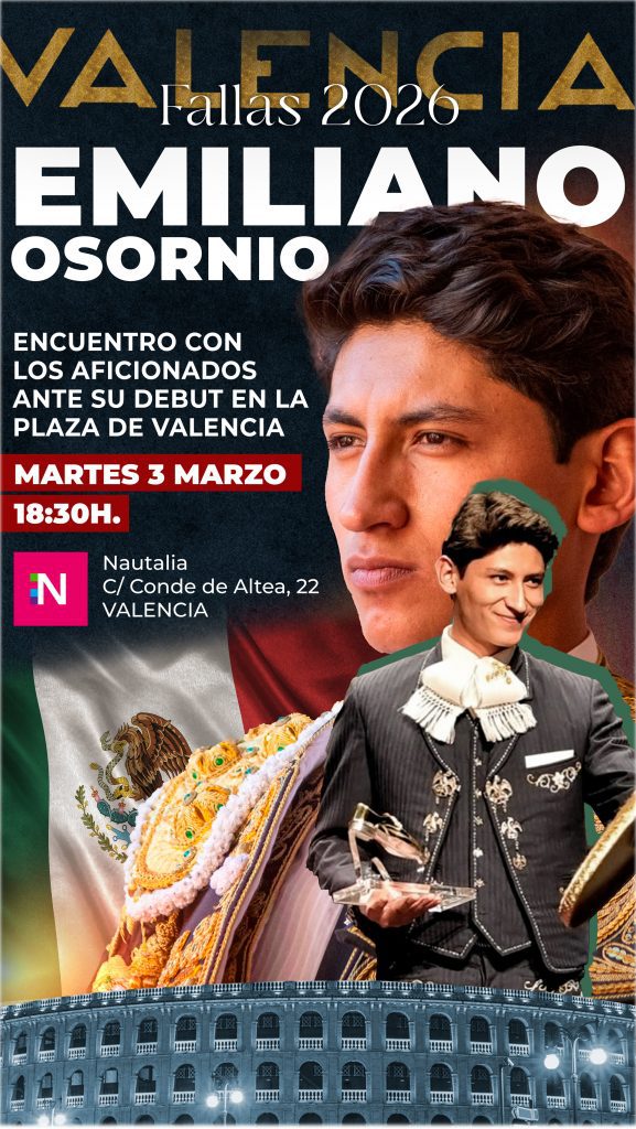 La Plaza de Toros de Valencia y el novillero mexicano Emiliano Osornio han organizado un encuentro con los aficionados que se celebrará el próximo 3 de marzo. El joven espada, considerado uno de los nombres más prometedores del actual escalafón novilleril, compartirá sus sensaciones y expectativas ante un compromiso clave: su debut en el coso de la calle Xàtiva.