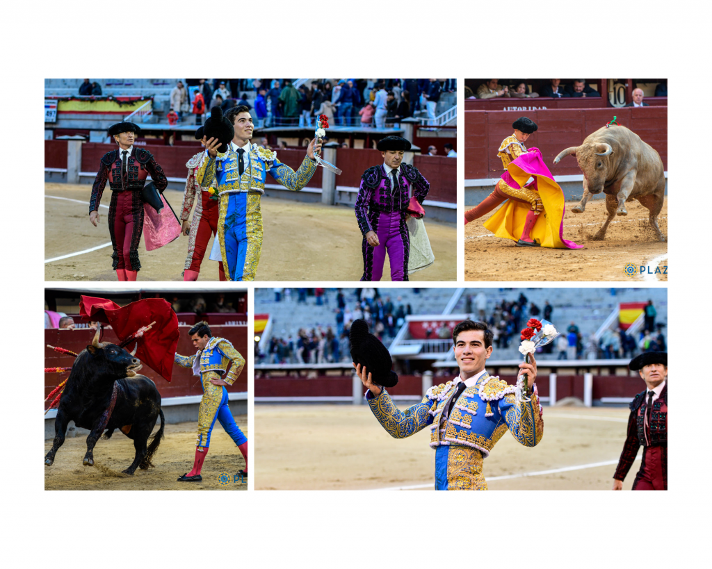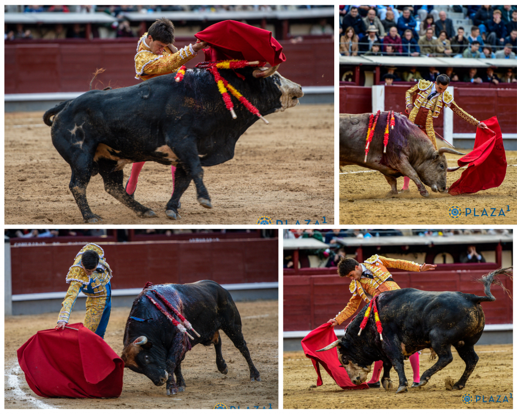 ‘Panchito’, de la ganadería de Guerrero y Carpintero, fue el tercero de la tarde. Cid de María lo recibió con un saludo templado a la verónica, ganándole terreno hasta dejarlo con una larga en los medios, que despertó la ovación del respetable. Para el joven novillero era una tarde clave, pues se presentaba en la Monumental de Las Ventas, y desde los primeros compases se notó su determinación. Bruno Aloi ejecutó un vistoso quite por tafalleras. Cid de María brindó su novillo al público, gesto que fue acogido con calurosos aplausos desde los tendidos, conscientes del momento que vivía el debutante. Inició su faena con pases por bajo desde las tablas, llevándolo poco a poco a los medios con suavidad y mando. A lo largo de la lidia, destacó la predisposición, la entrega y el hambre de triunfo del novillero, que apostó fuerte en su presentación. El toreo al natural fue lo más destacado de su actuación, aprovechando el mejor pitón del astado, el izquierdo, por donde ofreció embestidas francas y humilladas. Lástima que no tuvo suerte con los aceros. Silencio