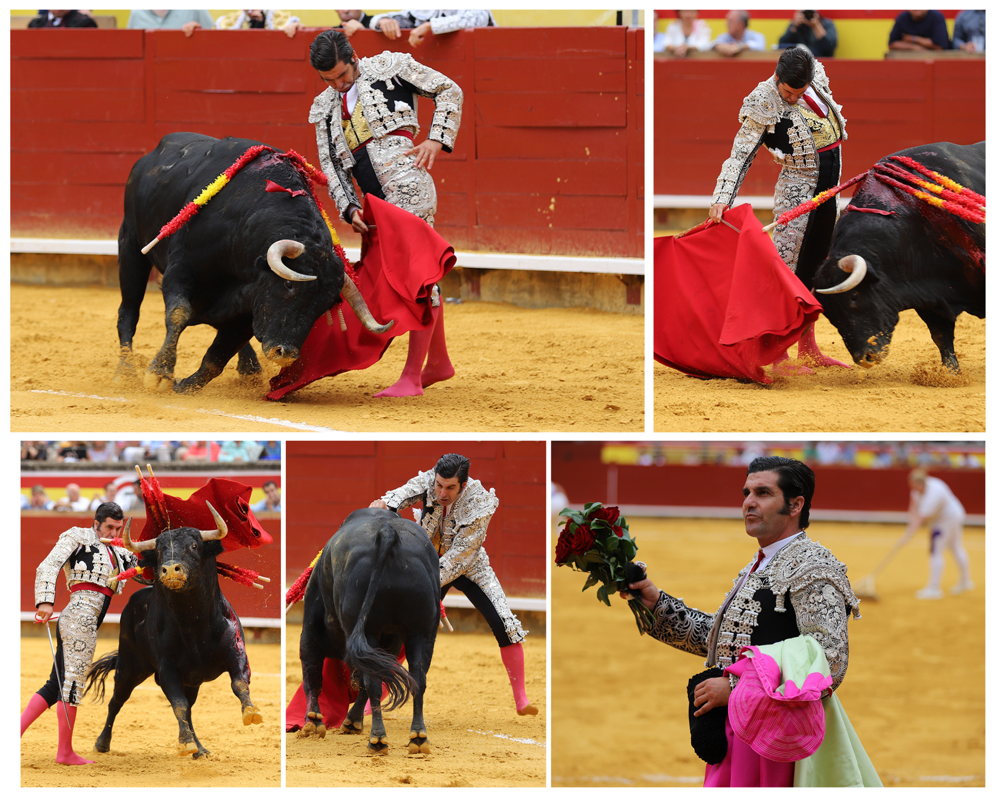 Morante de la Puebla recibió al abreplaza un toro de José Vázquez que tuvo calidad y nobleza desde su recibo en el capote, con el que el diestro sevillano dejó algún que otro detalle. Curro Javier, en las filas del diestro, se desmonteró tras un buen tercio de banderillas. En la faena de muleta llegó la magia del maestro Morante, con muletazos de mucho empaque por ambos lados. Culminó con una buena estocada que no fue suficiente, por lo que tuvo que matarlo con el golpe de cruceta, acertando al primer intento, oreja.