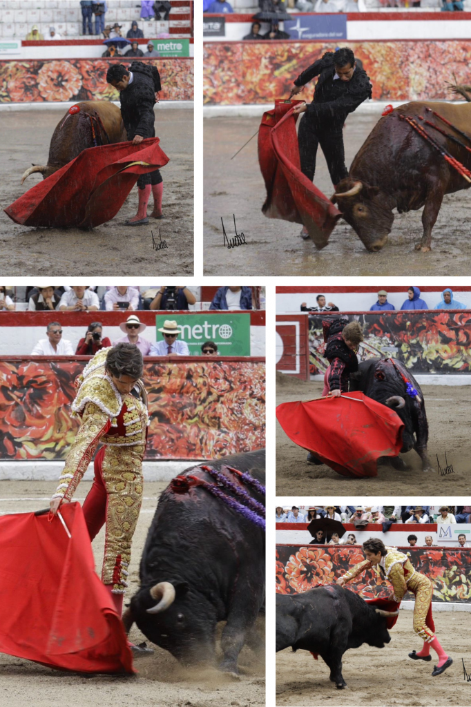 Mejoró notablemente en su faena al séptimo, ya con la plaza convertida en una laguna mientras seguía lloviendo con fuerza. El ecuatoriano ligó series con ambas manos muy limpias, sin tiempos muertos, incluso con cierto buen aire, en una faena muy completa y culminada además de un volapié atacando con valor. El público le premió con las dos orejas de forma merecida, si bien ni él ni Castella quisieron salir a hombros, con la lluvia haciendo estragos.