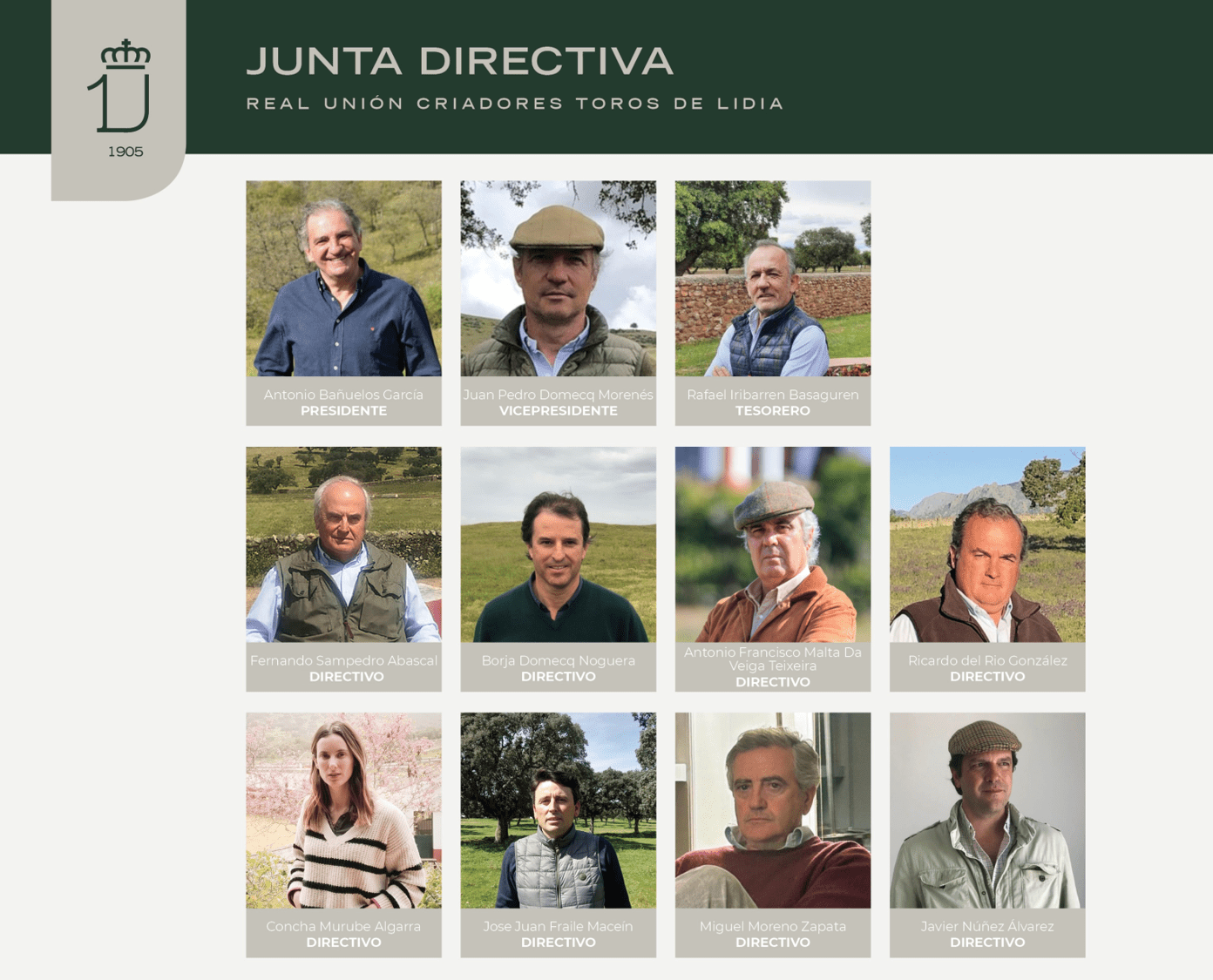 La Junta Electoral RUCTL, reunida ayer 4 de abril de 2024, ha proclamado por unanimidad la única candidatura presentada en el proceso electoral iniciado por la Entidad el 5 de marzo de 2024, presidida por D. Antonio Bañuelos y compuesta por los siguientes directivos: Presidente. – D. José Antonio Bañuelos García Vicepresidente. – D. Juan Pedro Domecq Morenés – Tesorero. – D. Rafael Iribarren Basaguren D. Fernando Sampedro Abascal D. Ricardo del Río González D. Borja Domecq Noguera D. Antonio Francisco Malta Da Veiga Teixeira D. José Juan Fraile Maceín D. Javier Núñez Álvarez Dª Concepción Murube Algarra D. Miguel Moreno Zapata Un equipo directivo de continuidad en el que se incorporan José Juan Fraile, Javier Núñez, Concepción Murube y Miguel Moreno.