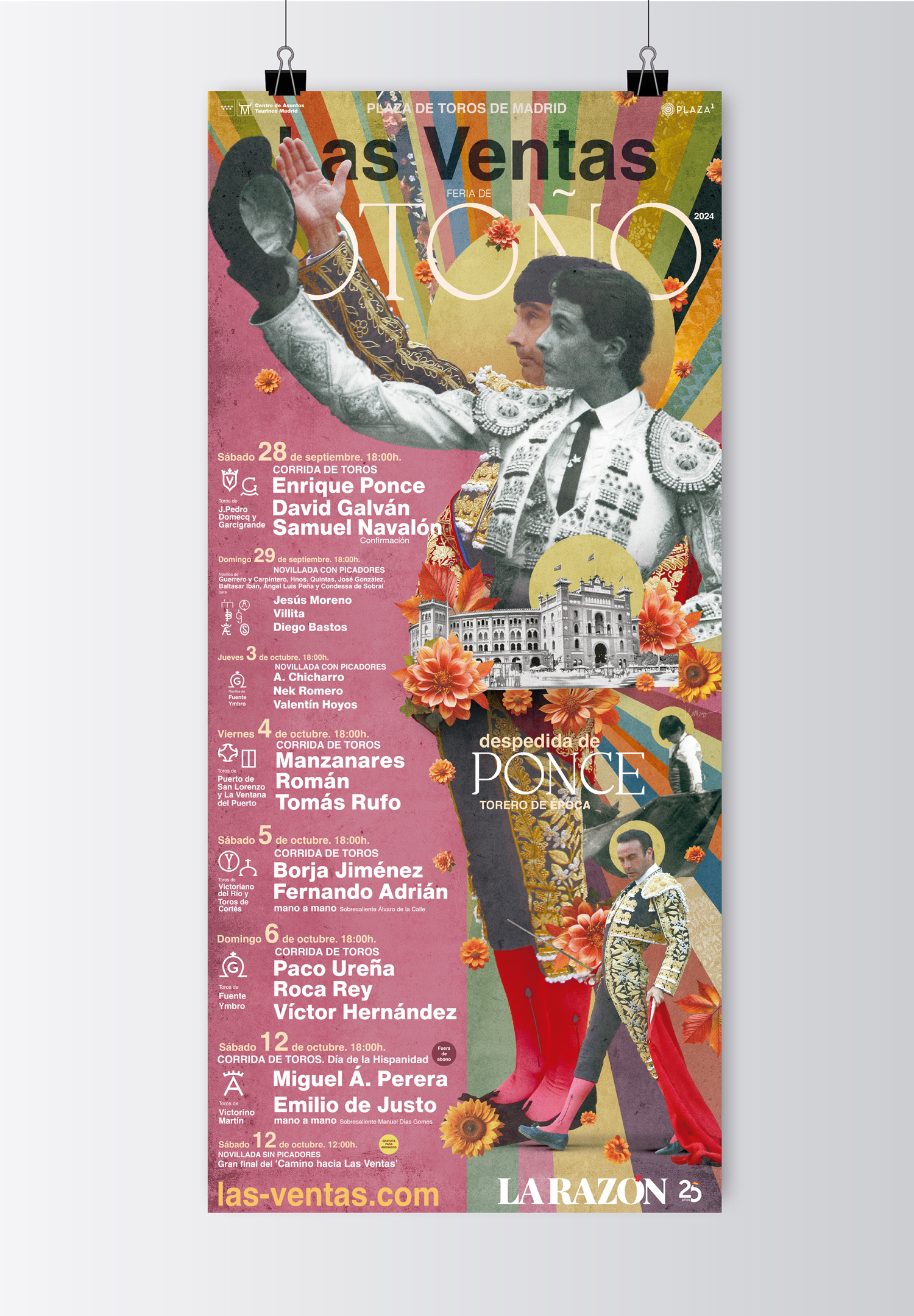El cartel que ilustra la Feria de Otoño 2024 rinde homenaje a la figura y trayectoria de Enrique Ponce, torero de época que vivirá su despedida de la afición madrileña en la tarde del 28 de septiembre.