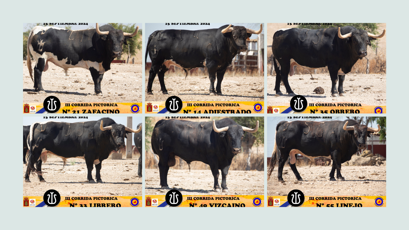 ‘Linejo’, ‘Vizcaíno’, Obrero’ ‘Librero’, ‘Zafacino’ y ‘Adiestrado’ aguardan en los cercados de la Finca ‘Los Ojuelos’ en la localidad sevillana de Marcehena. Un encierro preparado con mucho mimo y esmero por D. José Benítez-Cubero Pallarés para una fecha tan singular y especial: La III edición de la Corrida Pictórica del Aceite de Villacarrillo, el próximo domingo 15 de septiembre, a las 18:00 horas.