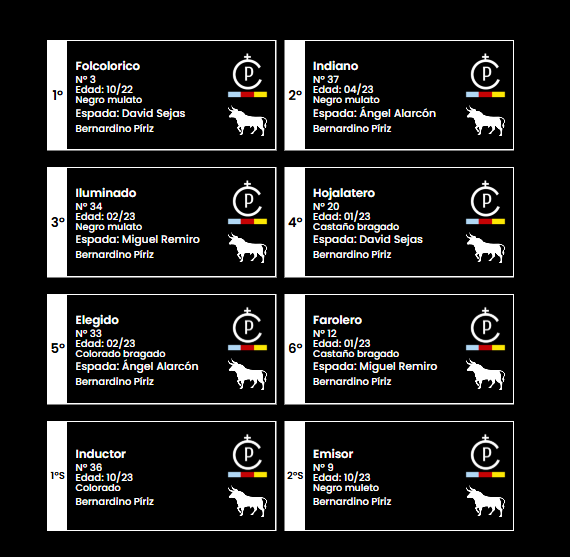 El orden de lidia ha quedado conformado de la siguiente manera: