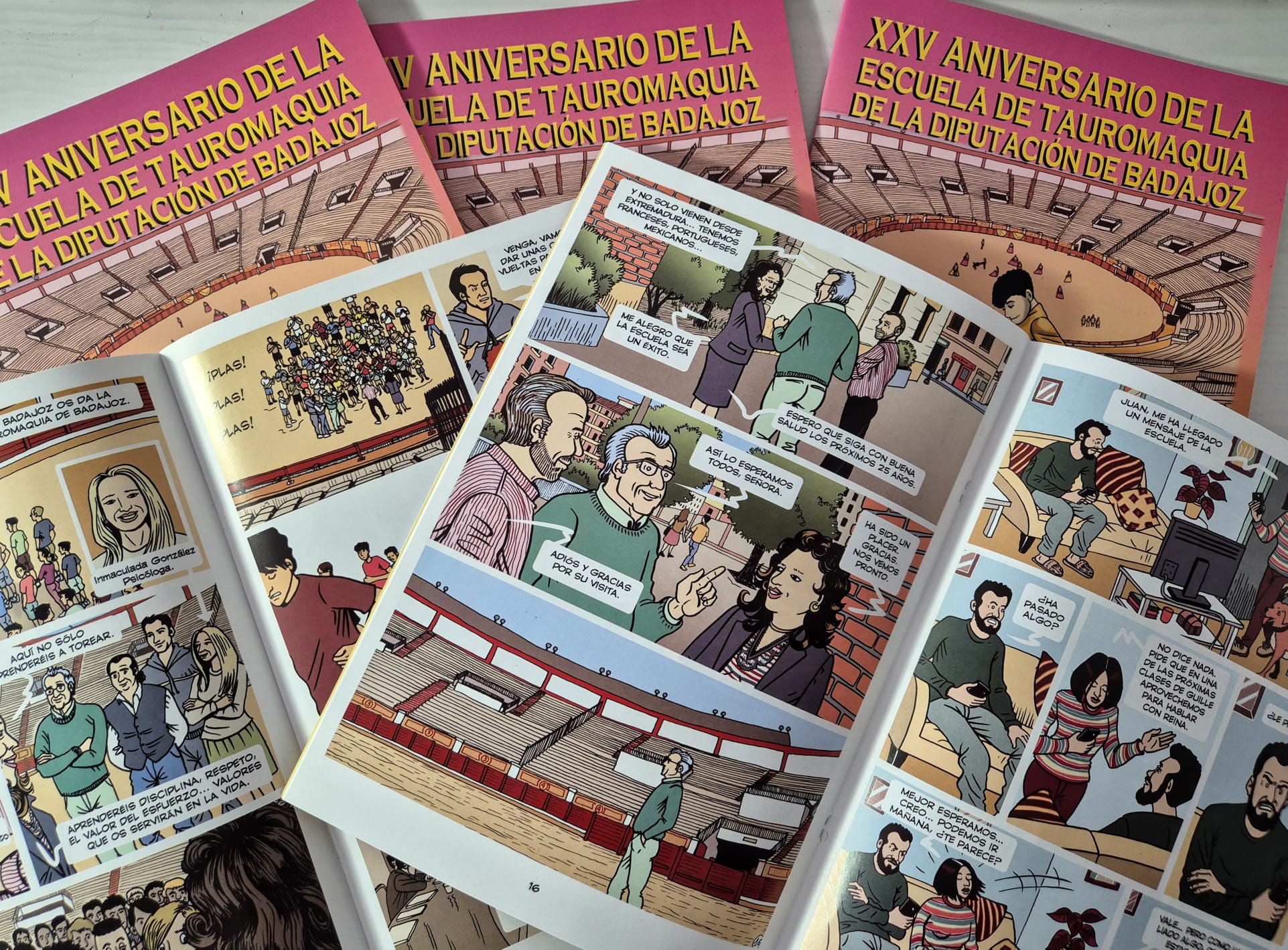 La Escuela Taurina del Patronato Provincial de la Diputación de Badajoz, lanza unos cómics animados para promocionar, promover y alcanzar la atención de todos los chicos y chicas de edades comprendidas entre los 10 y 20 años que sueñen con ser toreros.