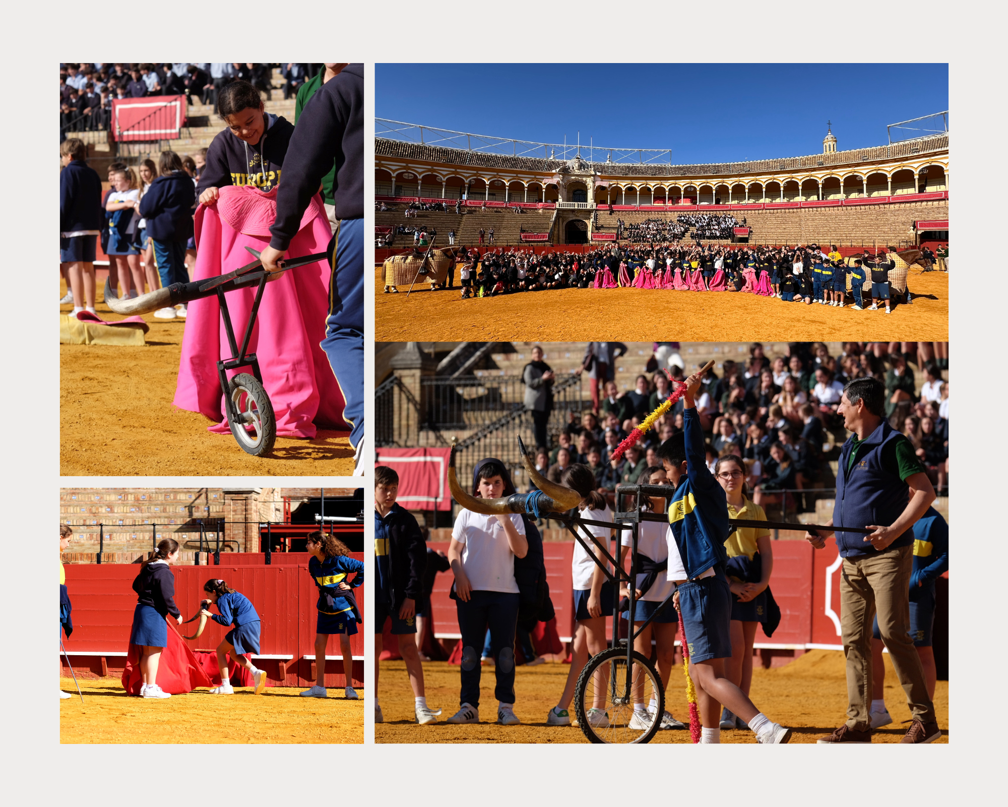 Las clases de toreo de salón organizadas por la empresa Pagés en el ruedo de la Maestranza han llegado hoy a su novena edición batiendo su propio récord de años anteriores. Durante toda la mañana, y de forma escalonada, han participado más de 1.000 alumnos de diferentes colegios y centros educativos de la ciudad. Todos ellos, de manera completamente gratuita, han recibido nociones básicas de los diferentes tercios de la lidia. El objetivo de este taller es que los más pequeños tomen contacto de forma práctica con el toreo.