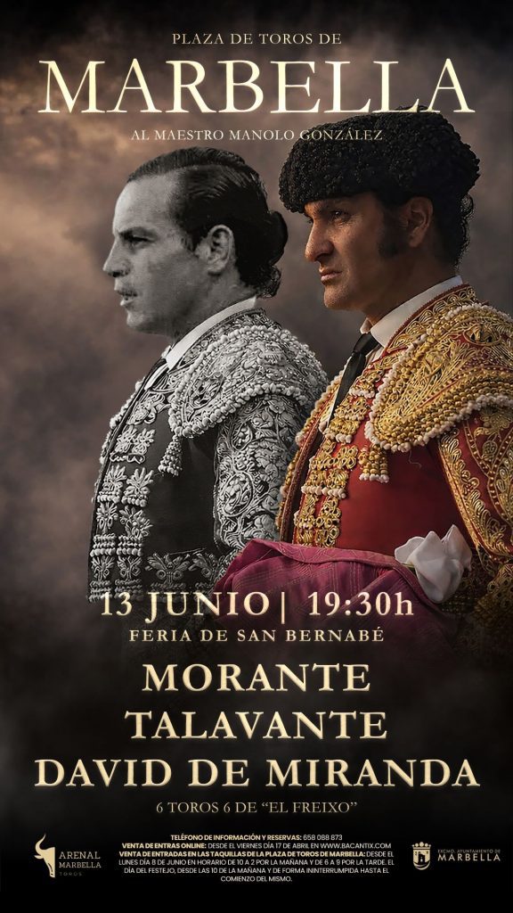 La empresa Arenal Marbella Toros ha presentado los carteles de la temporada 2026 en la plaza de toros de Marbella, configurada en torno a dos corridas de toros los días 13 de junio y 7 de agosto, con un claro protagonista: Morante de la Puebla, que hará doblete.
