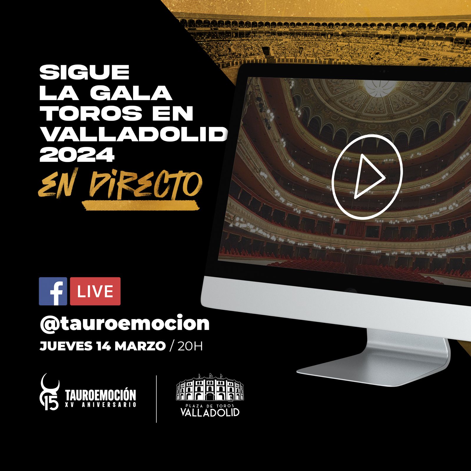 Esta tarde, a partir de las 20.00h, tendrá lugar el acto de presentación de carteles de la feria taurina de San Pedro Regalado en el Teatro Calderón de Valladolid. Debido a la gran acogida que ha tenido el evento, la alta demanda de asistentes ha agotado todas las invitaciones. No obstante, los interesados podrán seguir también la gala en directo a través de un streaming que realizará Tribuna de Valladolid, en el siguiente enlace: SIGUE EN DIRECTO LA GALA; y desde las redes sociales de Tauroemoción.