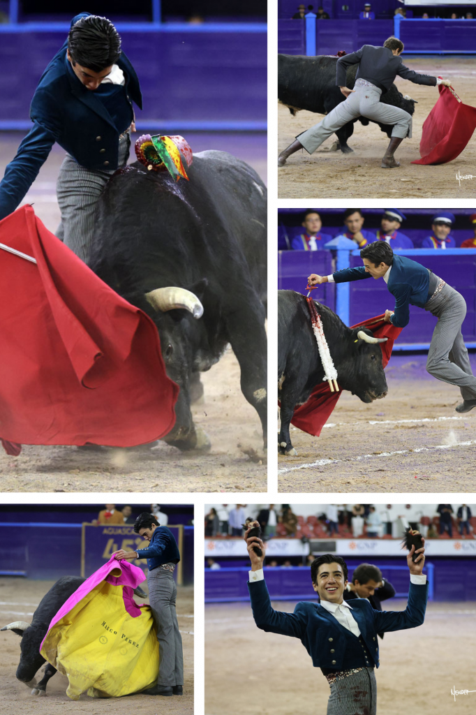 Y un séptimo de obsequio, de Santa Fe del Campo, bueno, Marco, luego de bregar, lanceo bien y mejor se vio en un quite por navarras. Buen puyazo del montado Guillermo Cobos. Con el manto rubí, Pérez se dio a ejecutar un trasteo suave, templado, enclasado, dimensional y artístico a través de su interpretación diestra, adornando con molinete, un afarolado y los de pecho. En lo que toca a la opción izquierdista, le puso esmero y torerismo. Hizo el toreo en redondo por el derecho, con cambio de mano por delante. Acabó de estocada entera y caída para hacerse de dos valiosos apéndices.
