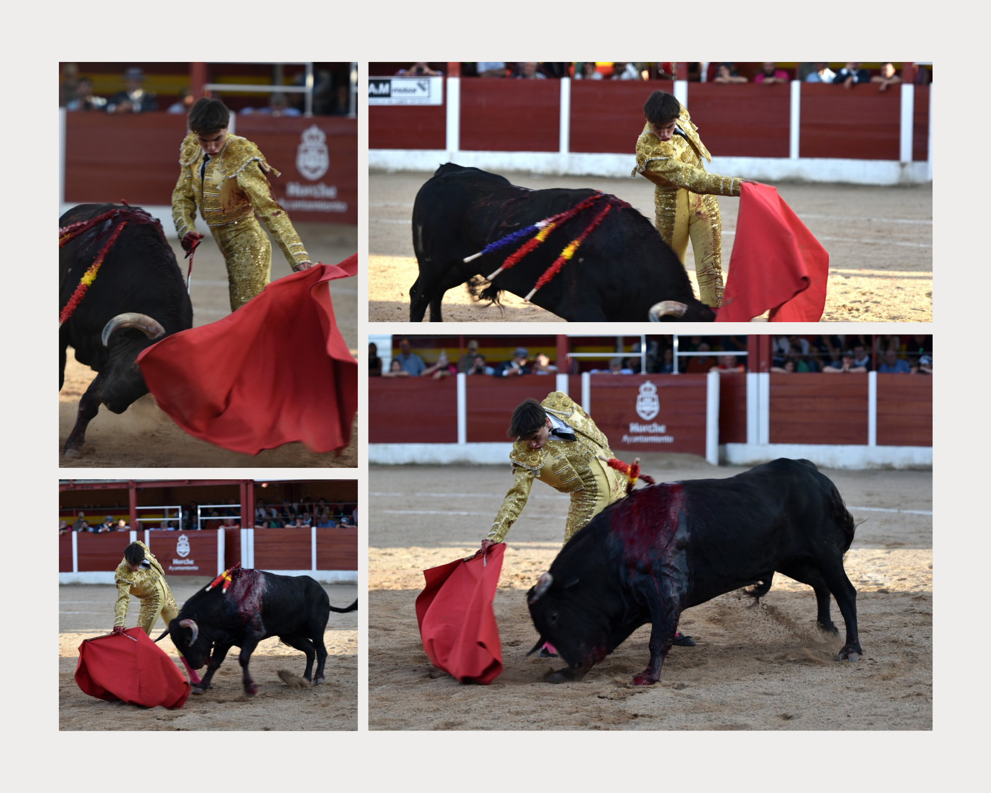 Desde Alcorisa se desplazaron dos autobuses y varios vehículos particulares, para no perderse el debut de Tomás. El tercer toro de la tarde fue para Tomás González, quien debutó con caballos en la localidad de Horche, despertando gran expectación entre los aficionados que ansiaban verlo dar un paso más en su prometedora carrera. González recibió al animal con verónicas de rodillas, demostrando un valor que fue aplaudido por la multitud. Brindó su faena a sus amigos en el tendido, antes de entregarse por completo en la muleta. Destacó especialmente su dominio del pitón izquierdo, sacando el máximo provecho del astado y dejando buen sabor de boca. Vuelta al ruedo con fuerte petición de oreja.