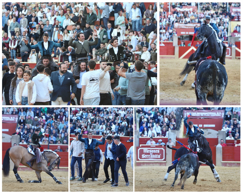 Cleopatra frenó al sexto al que colocó dos rejones de castigo ante uno que acometió con continuidad. Templo y mucho con Bético al que dejó meter en el estribo galopando de costado en el interior del tercio. La reunión de un extremo a otro de la plaza con elegancia suprema y toreando con empaque. Todo ante un toro fijo en los jacos pero con menos arranque y al que había que llegar encima. Raza de Lea por doquier y doma de alta escuela. Diluvio ofreció el pecho con un tranco bellísimo para conjugar una reunión arriba. Además acortó distancias en un alarde de valor y seguridad, para dejar banderillas a una mano en todo el morrillo. Muy metida en el cierraplaza. Fermín a galope en un carrusel de rosas con compás y todo reunido arriba. Espontáneo cerró una actuación de gran calado con una impresionante Lea. Rejón arriba de rápido efecto y dos orejas.