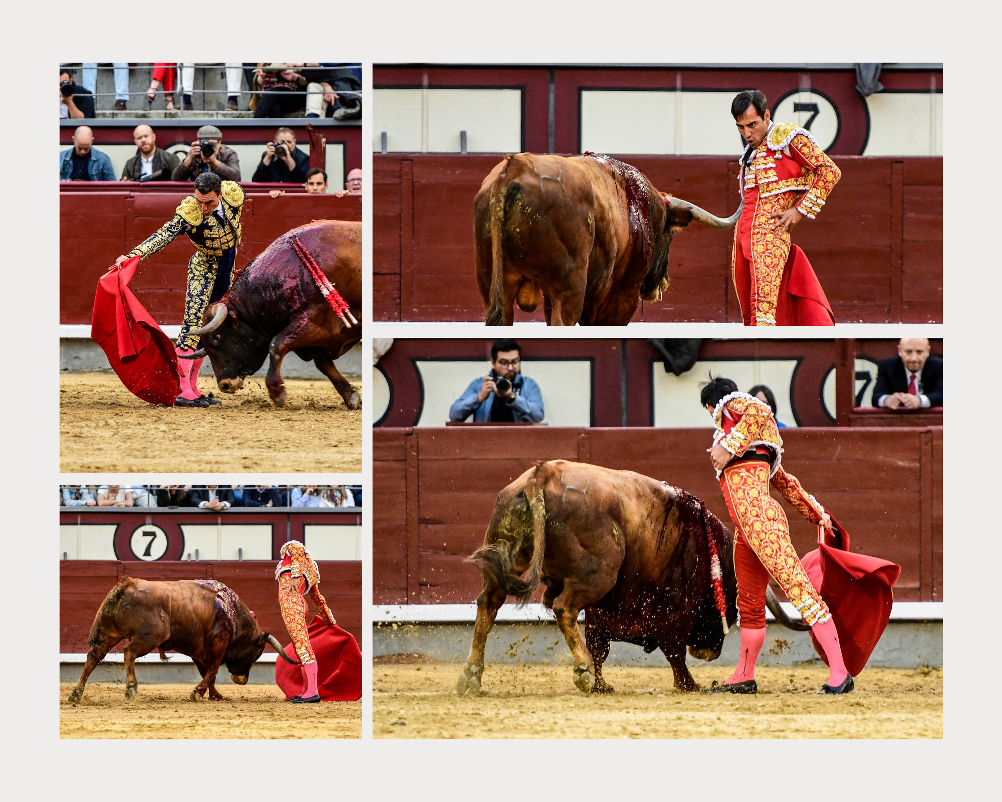 El tercer toro de la tarde fue ovacionado al salir por la puerta de toriles. En las tablas del 7 inició el saludo capotero Gómez del Pilar. Por derechazos comenzó la faena el madrileño arrancando las palmas de los tendidos. Dejó varias tandas ligadas a un toro que se ceñía al cuerpo. Pinchó en un primer intento mientras sonaba el primer aviso. Dejó una estocada tendida. 1 aviso. Silencio.