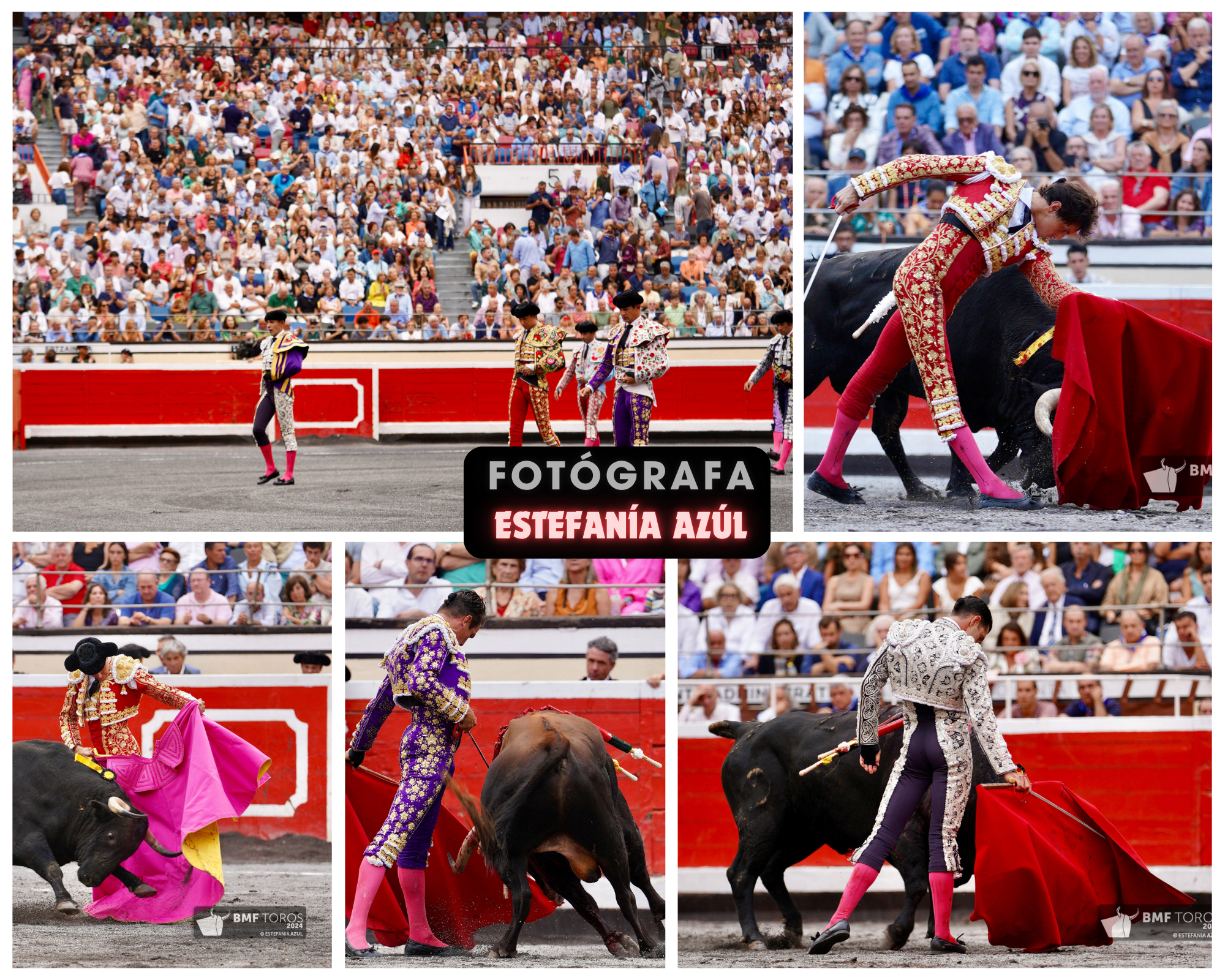 Abre plaza Manzanares con un toro bastante flojo al que consigue dar buenos pases a la verónica, le dio una buena tanda con la muleta por el pitón derecho cuidando mucho al toro, así como por el izquierdo bajó la intensidad de la faena, pero un cambio de mano volvió a despertar a los tendidos de Bilbao, premiándolo con una oreja.