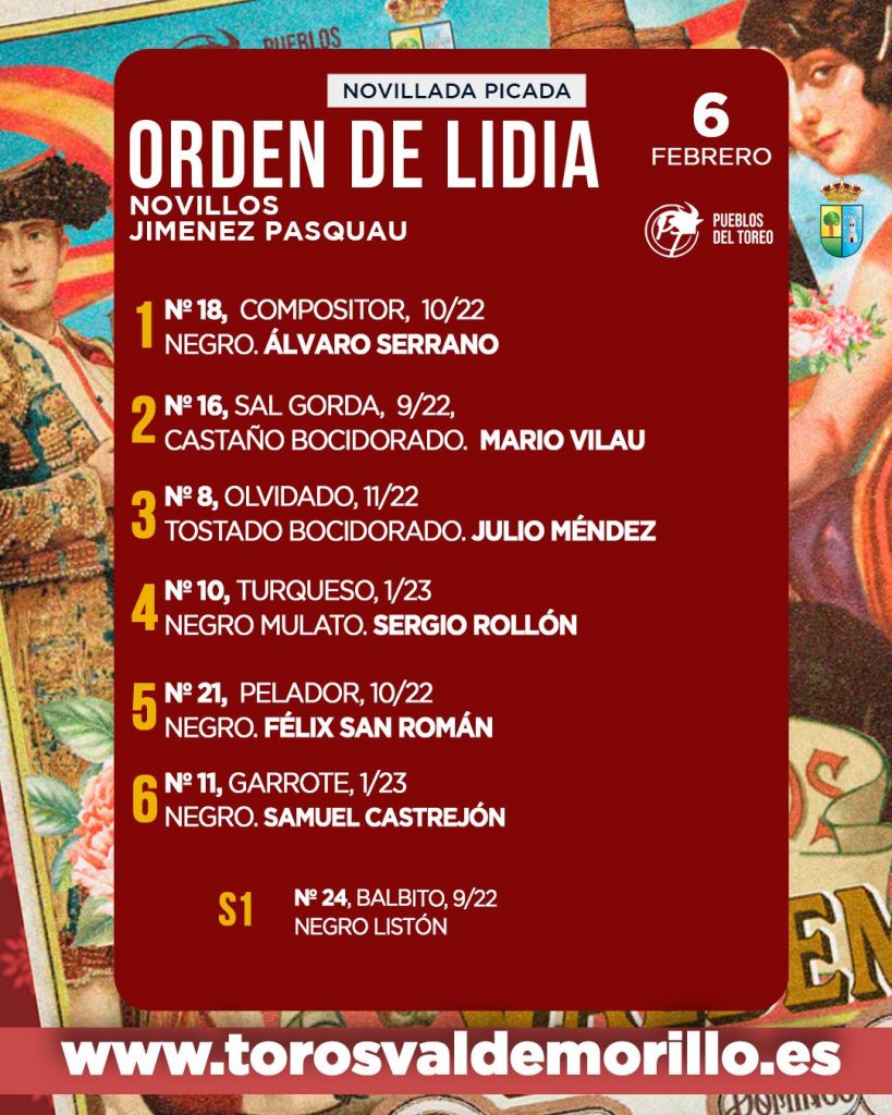 Los novillos de Jiménez Pasquau que abrirán la Feria Taurina de Valdemorillo ya han sido sorteados y enchiquerados. A partir de las 17:00 horas, el coso madrileño acogerá la primera cita del ciclo con una novillada que reúne a seis nombres del escalafón.