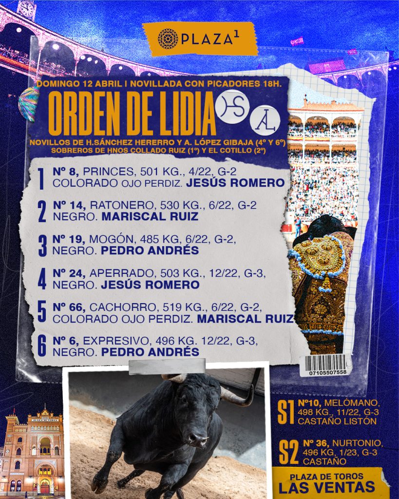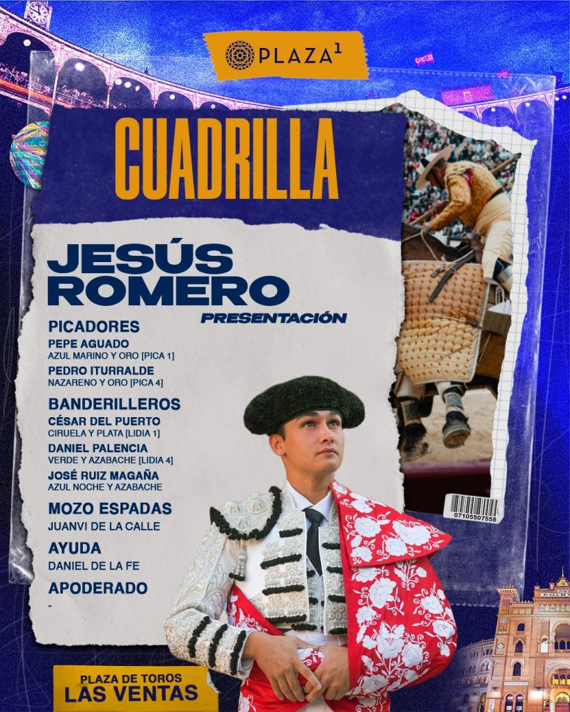 A partir de las 18:00 horas harán el paseíllo los novilleros Jesús Romero, que se presenta en Madrid, Mariscal Ruiz y Pedro Andrés, que también hará su presentación en el coso venteño en una cita que abre el capítulo novilleril de la temporada.