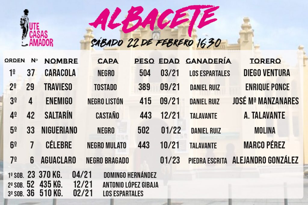 De «Caracola» a «Aguaclaro» los siete novillos para esta tarde en Albacete