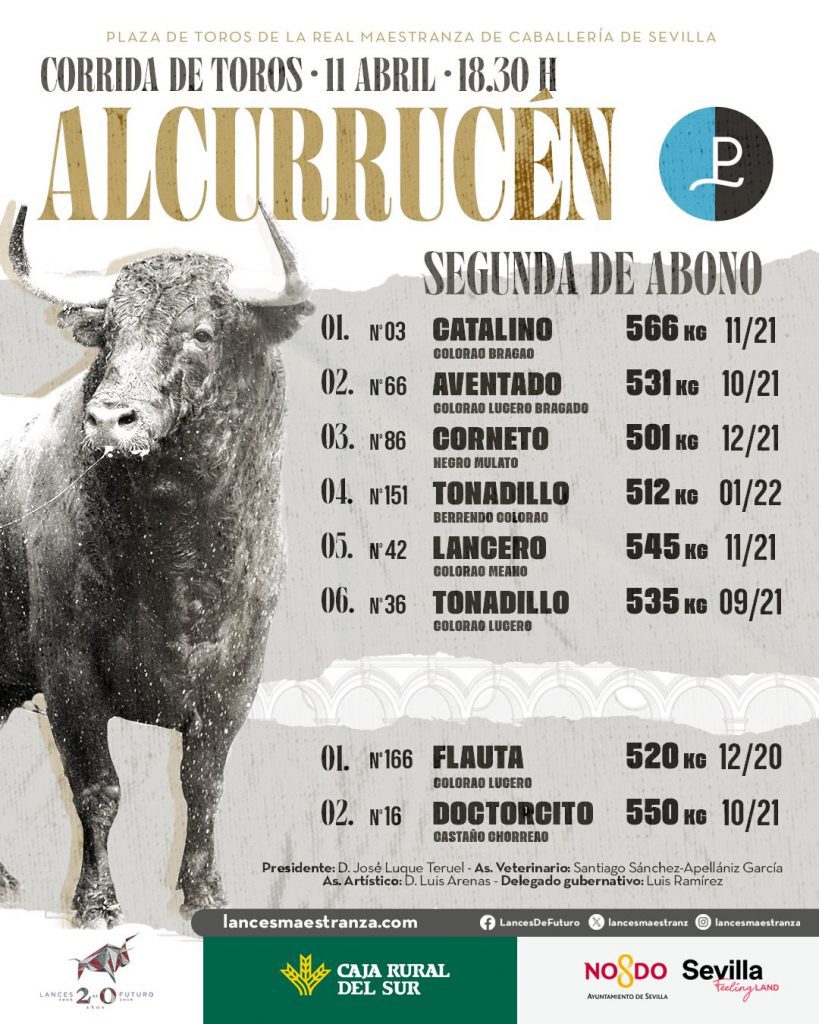 La Feria de Abril de Sevilla arranca este sábado en la Real Maestranza con una corrida en la que ya han sido sorteados y enchiquerados los toros de Alcurrucén, encargados de abrir el ciclo en el coso hispalense.