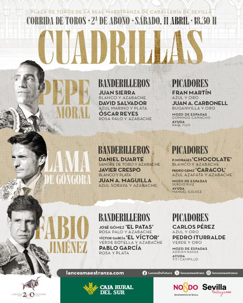 El cartel reúne a Pepe Moral, Lama de Góngora y Fabio Jiménez, tres toreros que afrontan una cita clave en el inicio de la feria, marcada por la exigencia y la oportunidad de abrirse paso en uno de los escenarios más determinantes de la temporada.