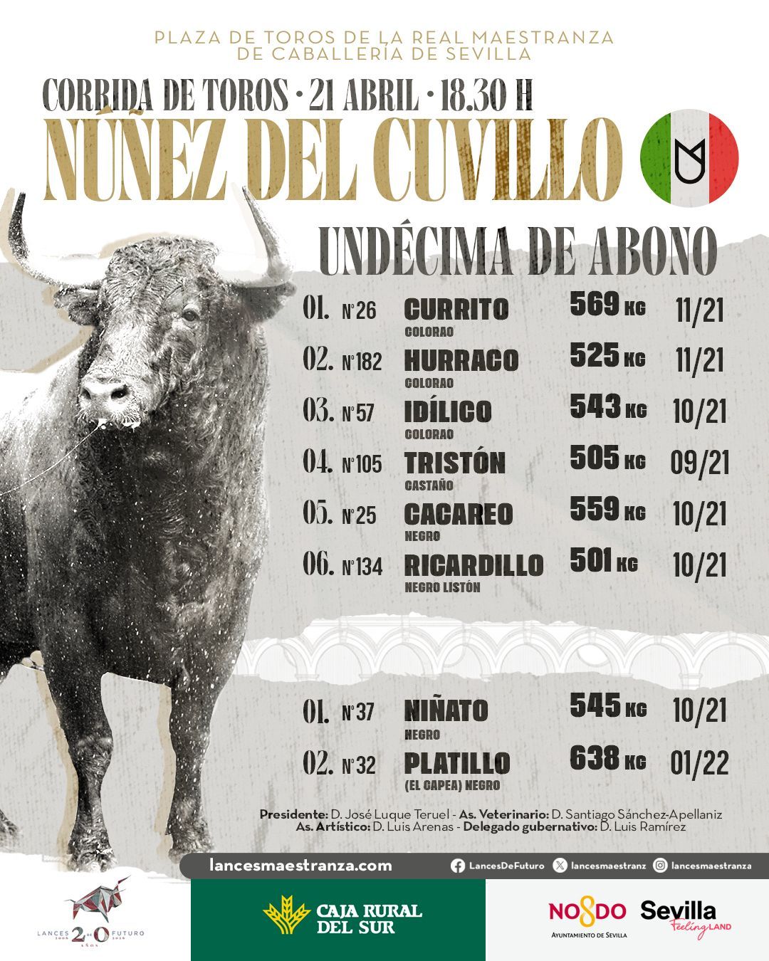 De ‘Currito’ a ‘Ricardito’ los seis de Núñez del Cuvillo para esta tarde en Sevilla
