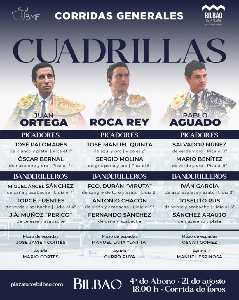 En el cartel, una terna de gran atractivo compuesta por Juan Ortega, Roca Rey y Pablo Aguado, que harán el paseíllo a partir de las 18.00 horas.