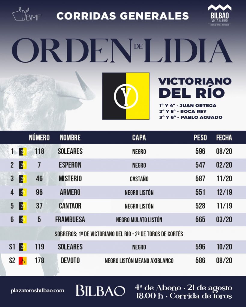 De 'Soleares' a 'Frambuesa' los seis de Victoriano del Río para esta tarde en Bilbao