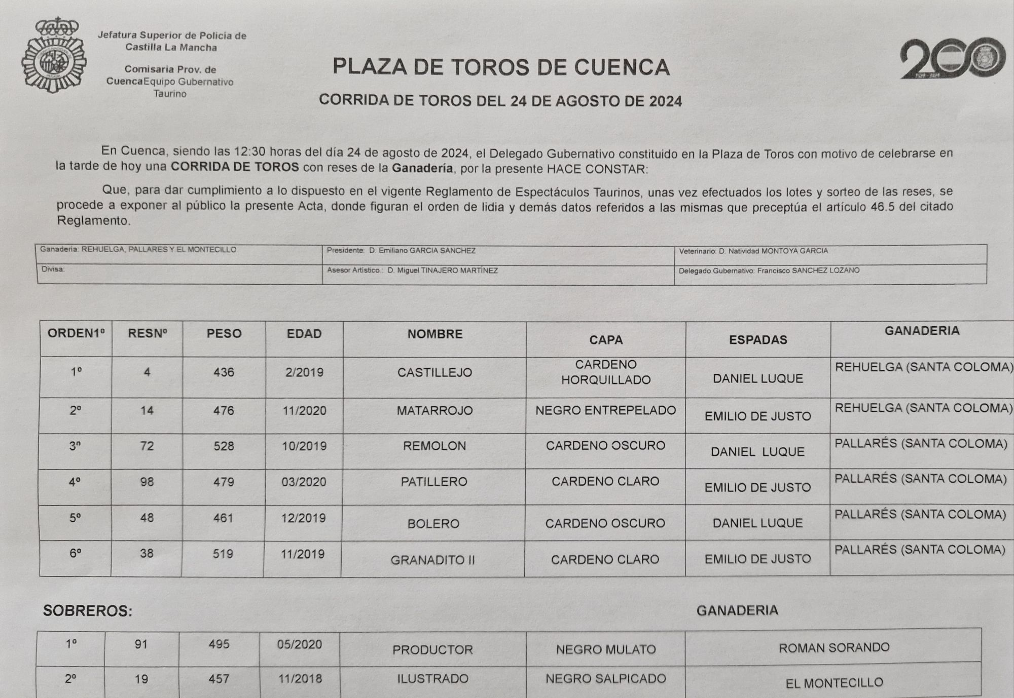 La Feria de San Julián de Cuenca da el pistoletazo de salida este sábado con una corrida con dos toros de Rehuelga, que saltarán en primero y segundo lugar, y cuatro, de Pallarés. El cartel lo componen Daniel Luque y Emilio de Justo, un mano a mano de alto voltaje.