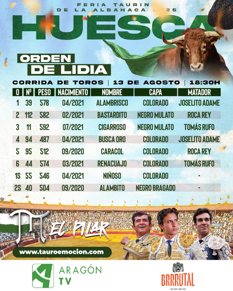 La plaza de toros de Huesca vivirá esta tarde un momento especial con la despedida de Joselito Adame, que trenzará su último paseíllo en el coso oscense. Para la ocasión, se lidiará una corrida de El Pilar, en un cartel que completa la figura peruana Roca Rey y el joven triunfador Tomás Rufo.