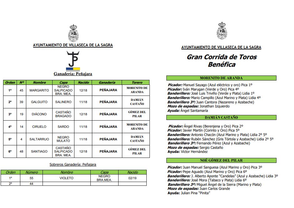 Los toros de Peñajara, que serán lidiados esta tarde en la II corrida de toros benéfica de Villaseca de la Sagra, ya han sido sorteados.
