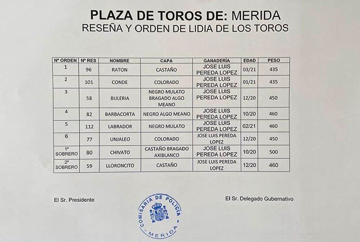 Los toros de José Luis Pereda ya han sido enlotados, sorteados y enchiquerados a expensas de ser lidiados esta tarde en Mérida en la Feria de Primavera 2025.