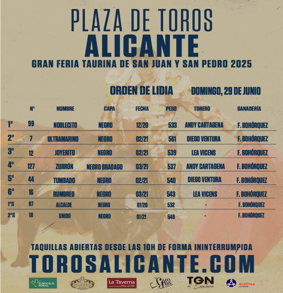Taquillas abiertas. Entradas online en www.torosalicante.com