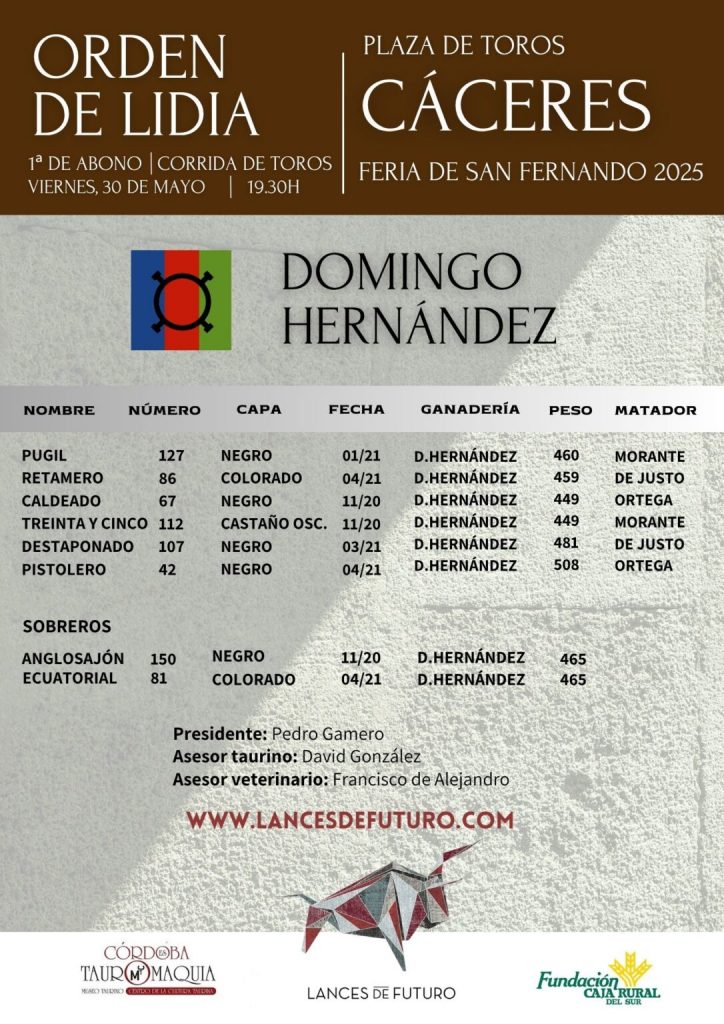Seis de Domingo Hernández para esta tarde en Cáceres