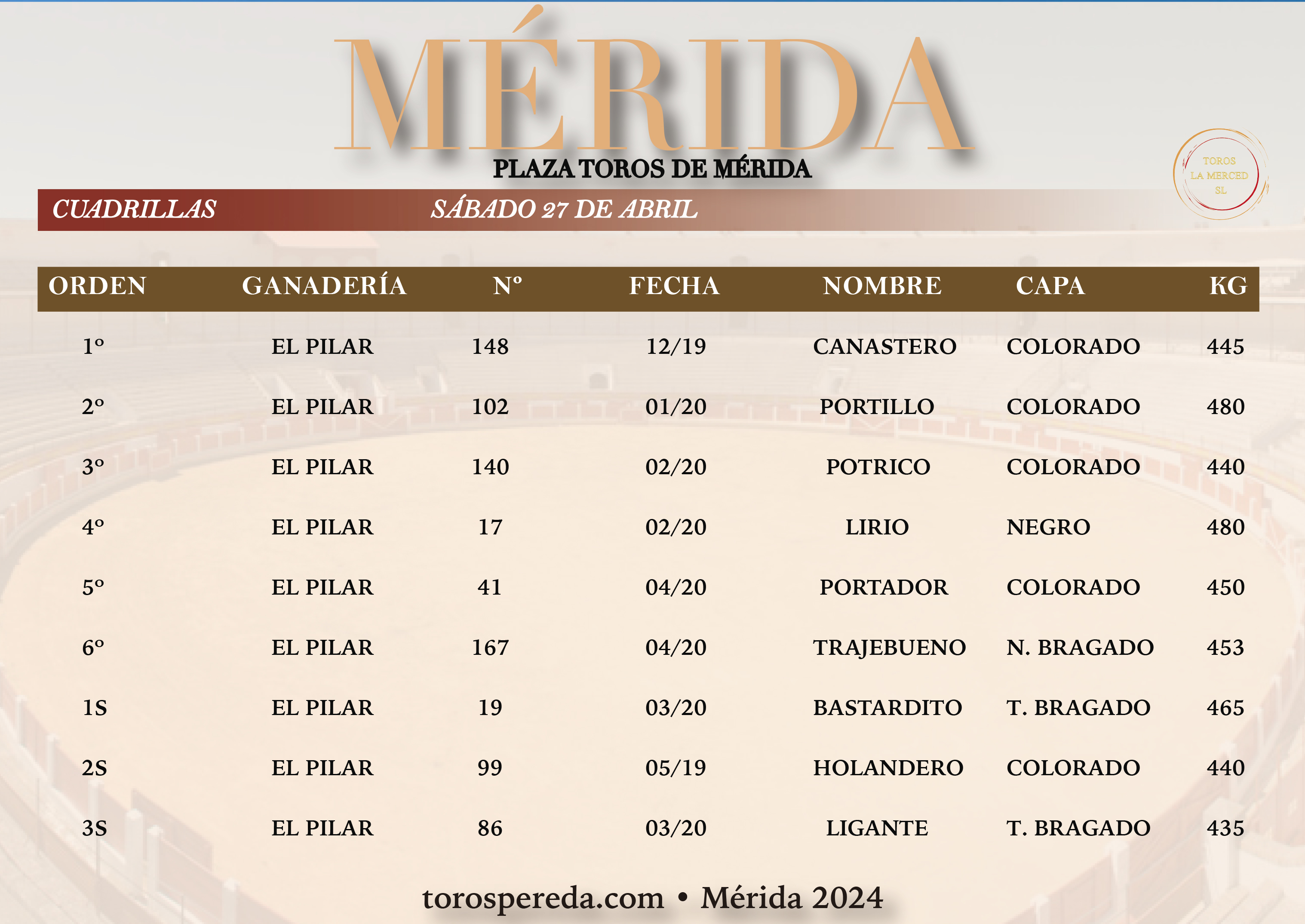 Los toros de El Pilar ya han sido enlotados, sorteados y enchiquerados a expensas de ser lidiados esta tarde en la extraordinaria ‘Corrida de Primavera’. Cartelazo de máximo lujo en el Coso de San Albín que está formado por Morante de la Puebla, Talavante y Roca Rey.