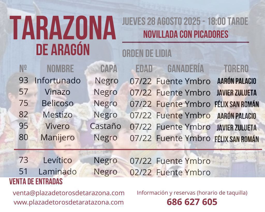 Seis de Fuente Ymbro para la novillada de Tarazona