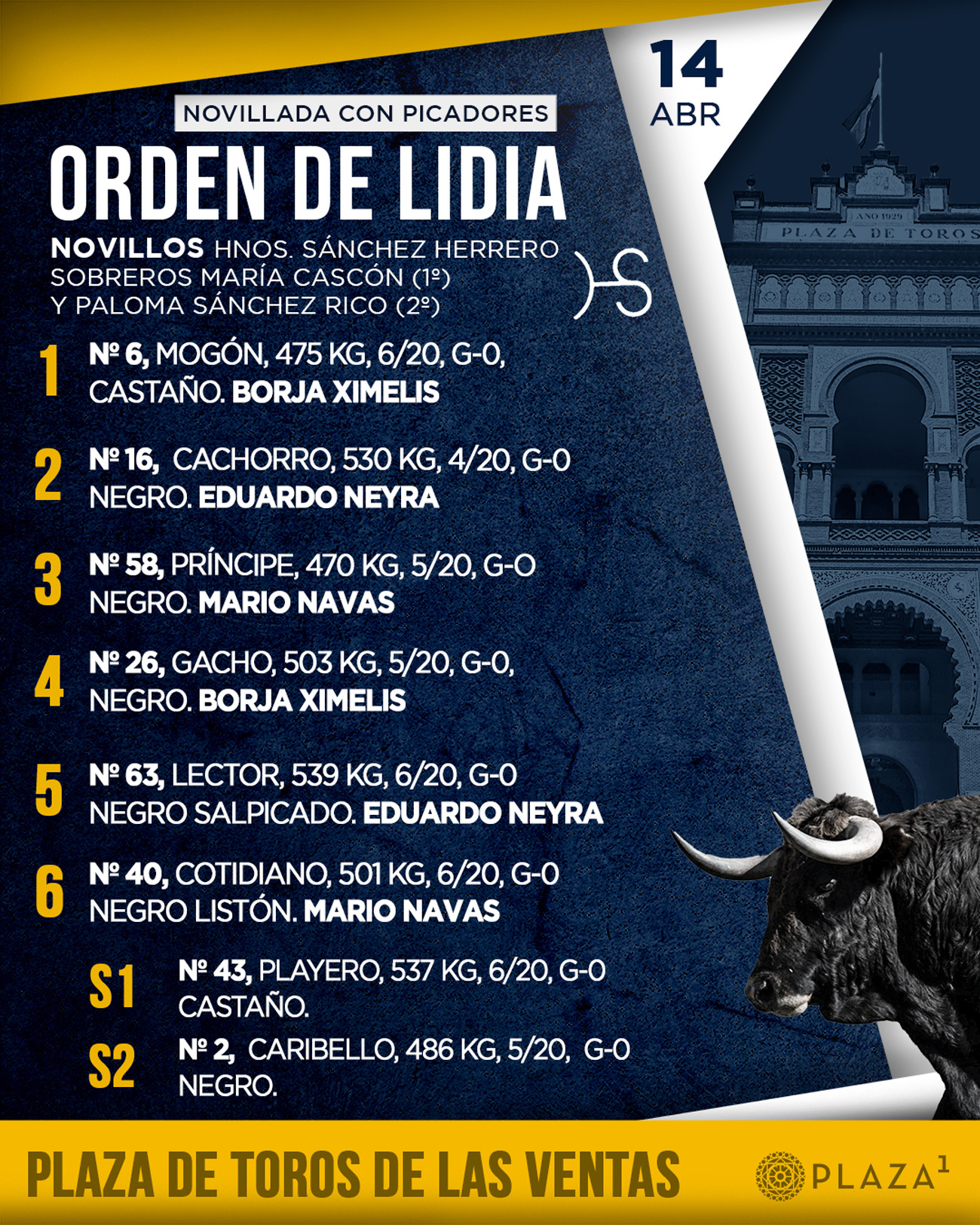 La Plaza de Toros de Las Ventas acoge esta tarde la segunda novillada del mes de abril. Seis novillos de Hermanos Sánchez Herrero han sido ya sorteados y enchiquerados en el coso venteño.