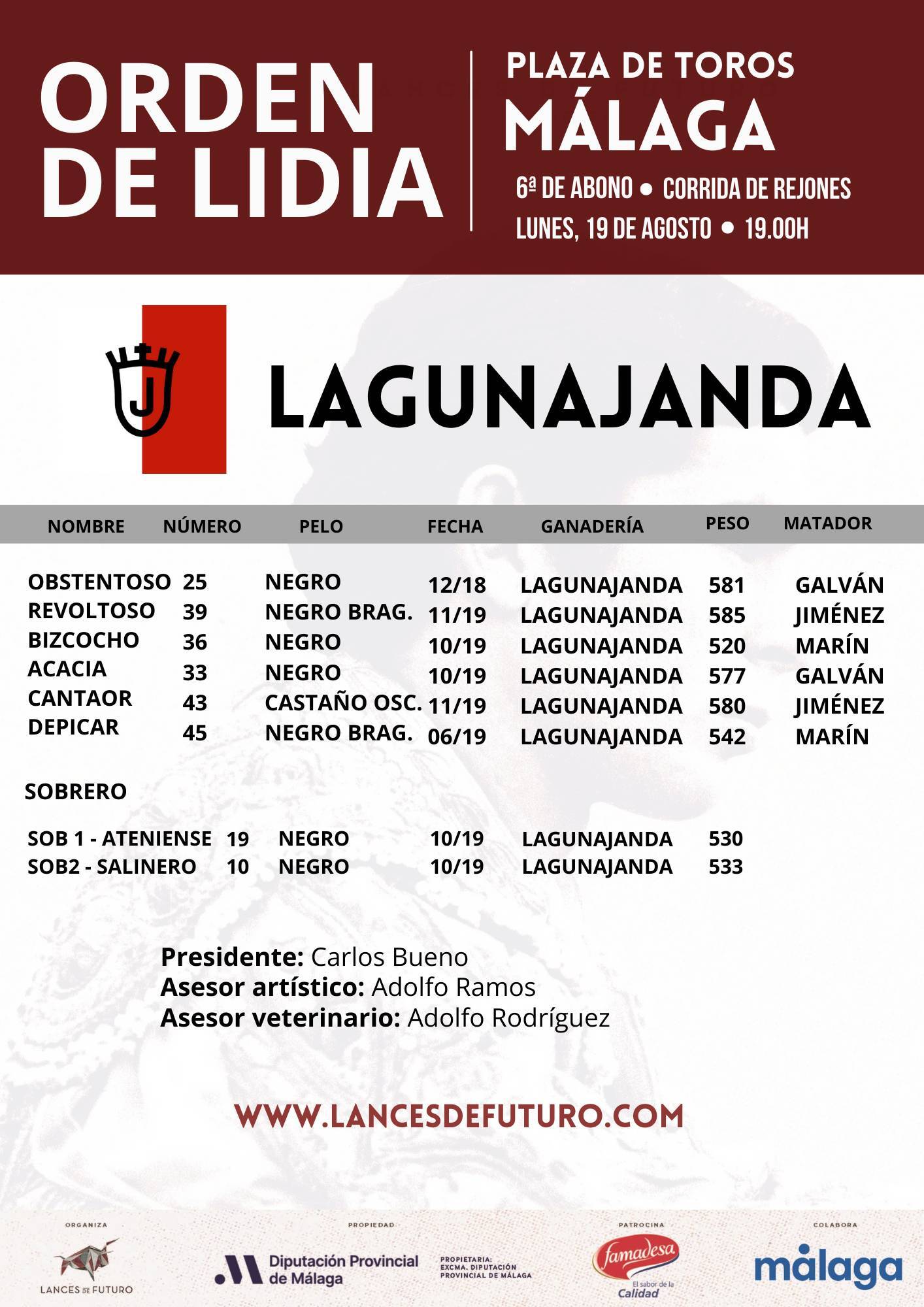 Ya han sido sorteados y enchiquerados los ejemplares de la ganadería de Lagunajanda para al penúltima corrida de toros de la Feria de Málaga 2024, en la que harán el paseíllo los diestros David Galván, Borja Jiménez y Ginés Marín.